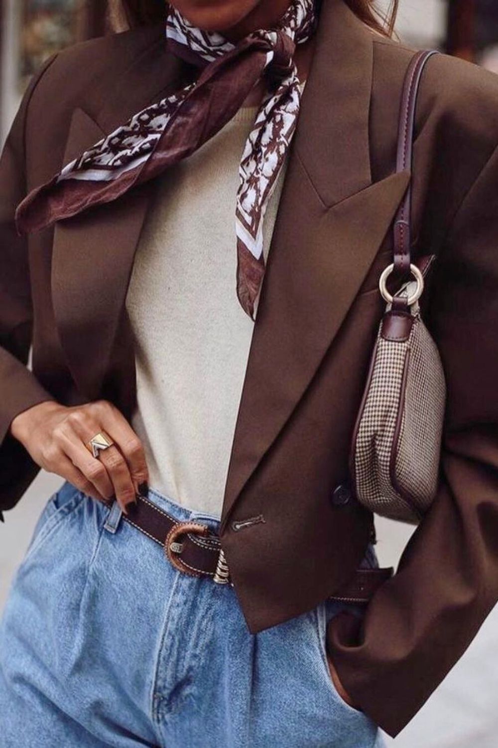 Put on some light-wash jeans, a creamy sweater, and top it off with a dark blazer. Now, la pièce de résistance—a patterned scarf! Accessorize with a minimalist belt and a sling bag that says you’re going places. And just like that, you’ve turned casual into classy!