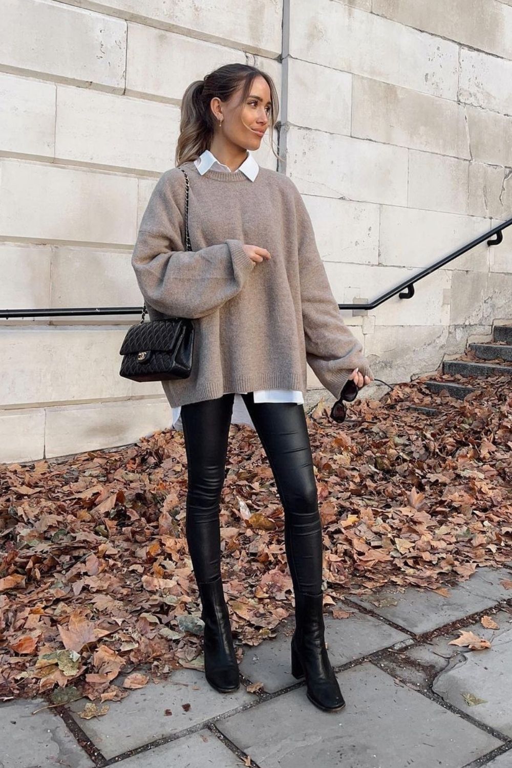 2. Oversized Sweater & Leather Leggings