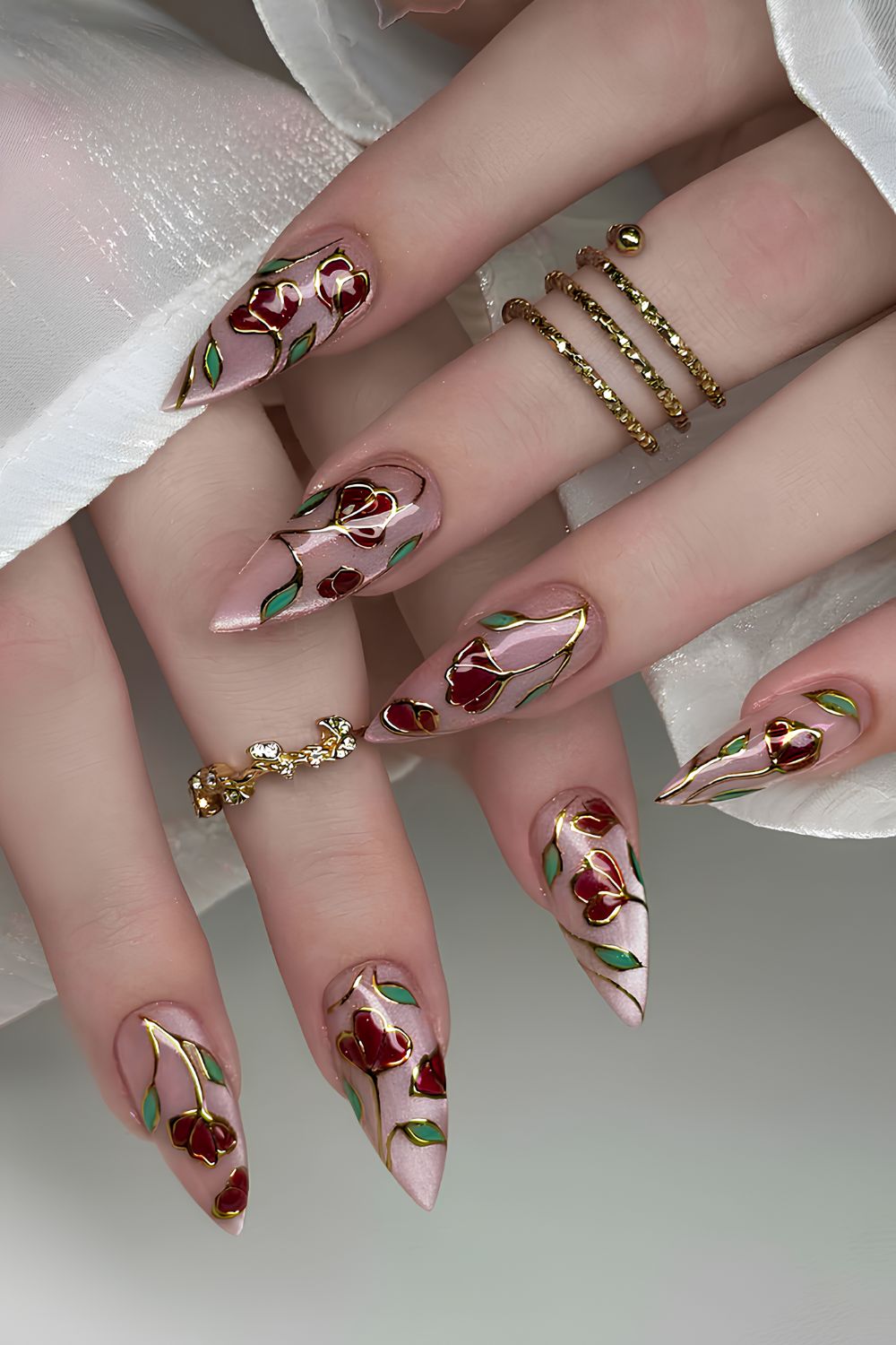 The best part? These floral nails work for any vibe. Go soft and dreamy with pastel petals over a milky cat eye base, or bring the drama with deep jewel tones and high-contrast florals.