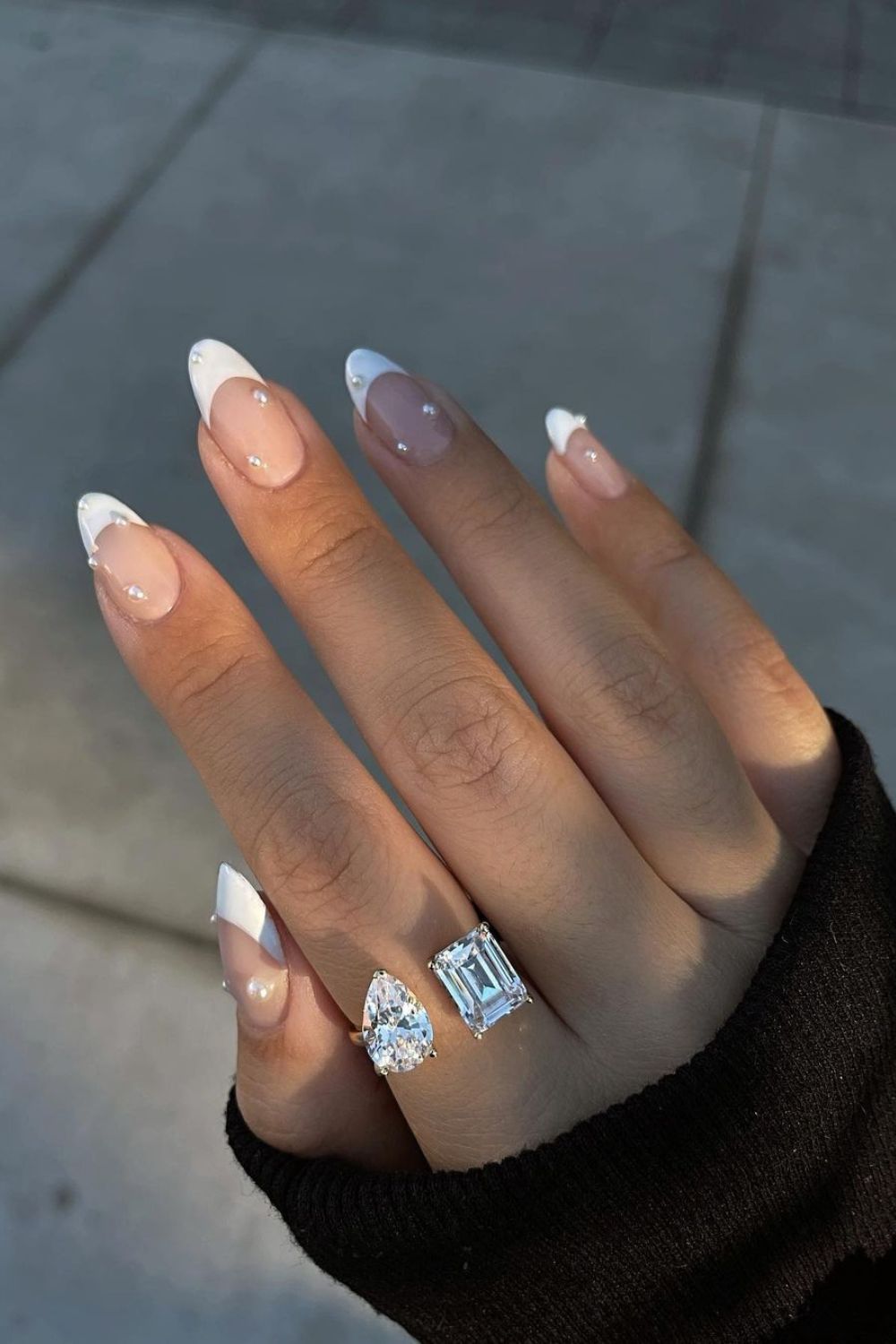 If you’re looking to upgrade a neutral mani, pearls are the move. Milky base, off-white Frenchies, and a few pearl decals per nail. Whether you’re in ripped jeans or a cocktail dress, these just work.