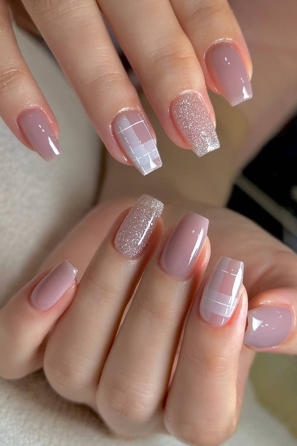 Nail shape matters: Almond and coffin nails give you the most canvas to work with. Square and squoval can cut off intricate patterns awkwardly, so be careful. Short nails can absolutely do plaid – just stick to simpler designs like windowpane or gingham so you’re not cramming tiny details onto a small surface.