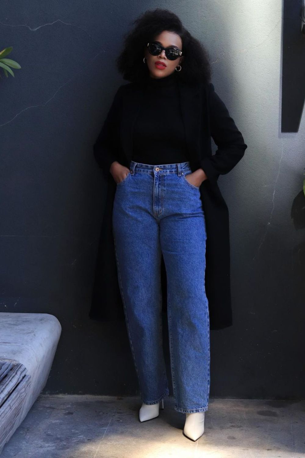 Full-length jeans are a yes. They elongate your legs and make you look like you just grew an inch. Just tuck in a cozy sweater and you’re good to go.
