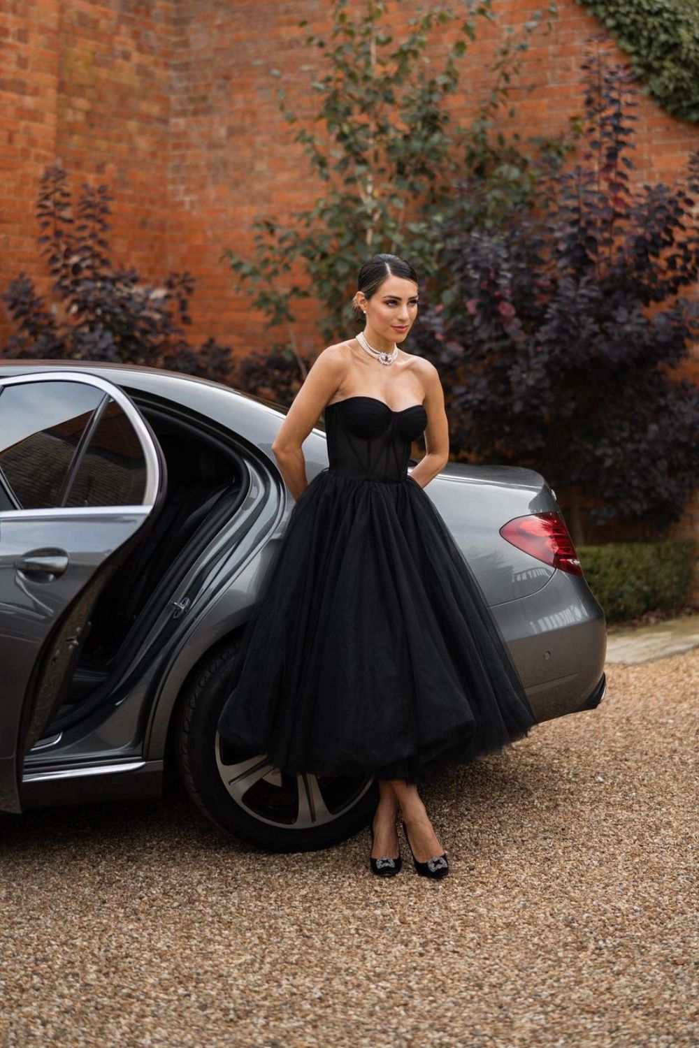 When it’s time to nail that wedding guest look, going classic is like saying yes to a big slice of wedding cake—delightful! A black dress with a bustier top and layers of tulle is fail-proof elegance that turns heads without stealing the bride’s thunder.