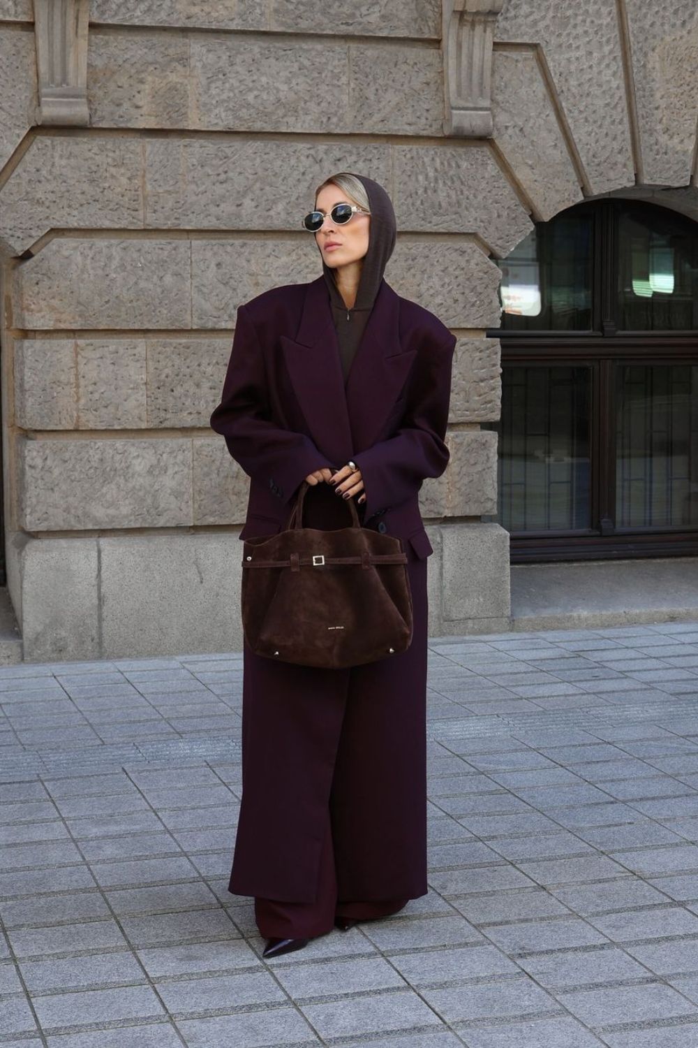 Burgundy coat tossed over a hoodie? Now that’s how you do winter layers. It’s giving “I care, but not too much”— the lazy genius of cold-weather fashion.